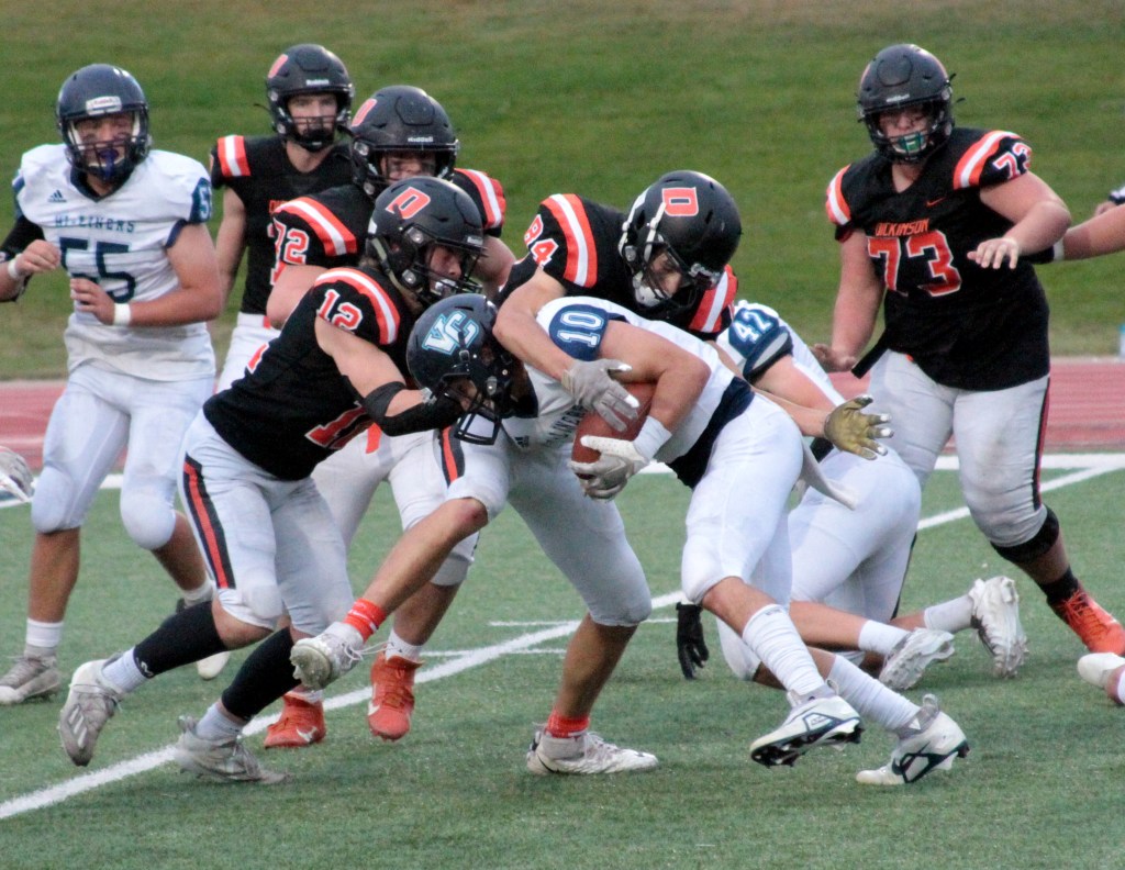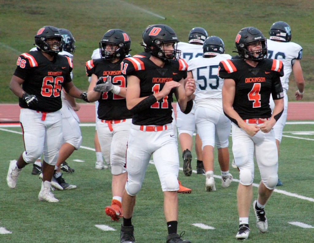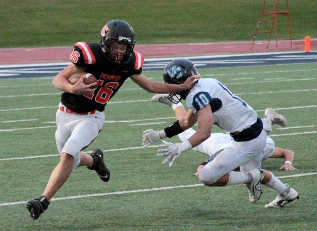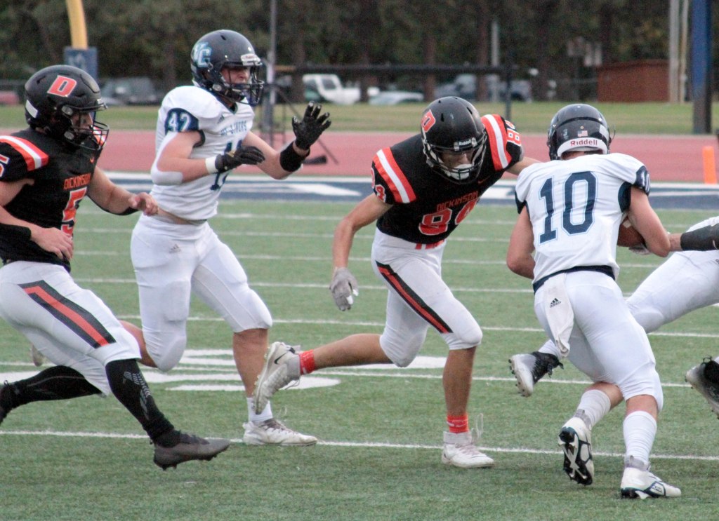 “Offensively we couldn’t sustain a drive, and defensively, we were on the field a lot,” Dickinson head coach John Tuchscherer said. “Their style of football really wore on our guys in the fourth quarter, and then when we started getting tired, we started making mistakes and doing more than we needed to instead of playing the scheme and assignment.”