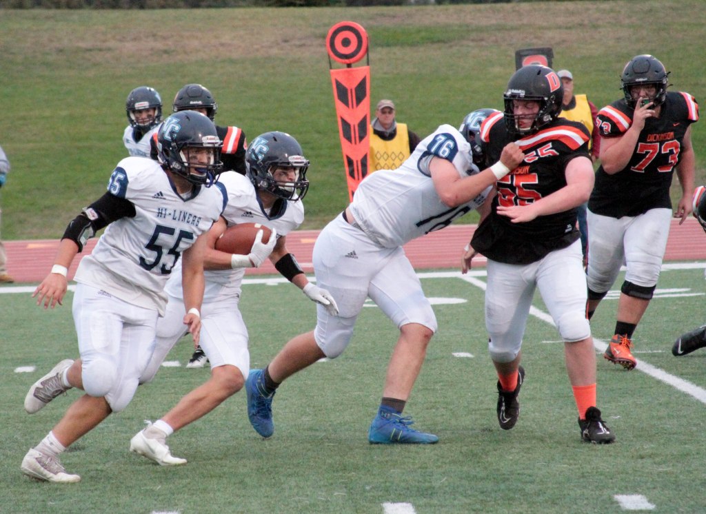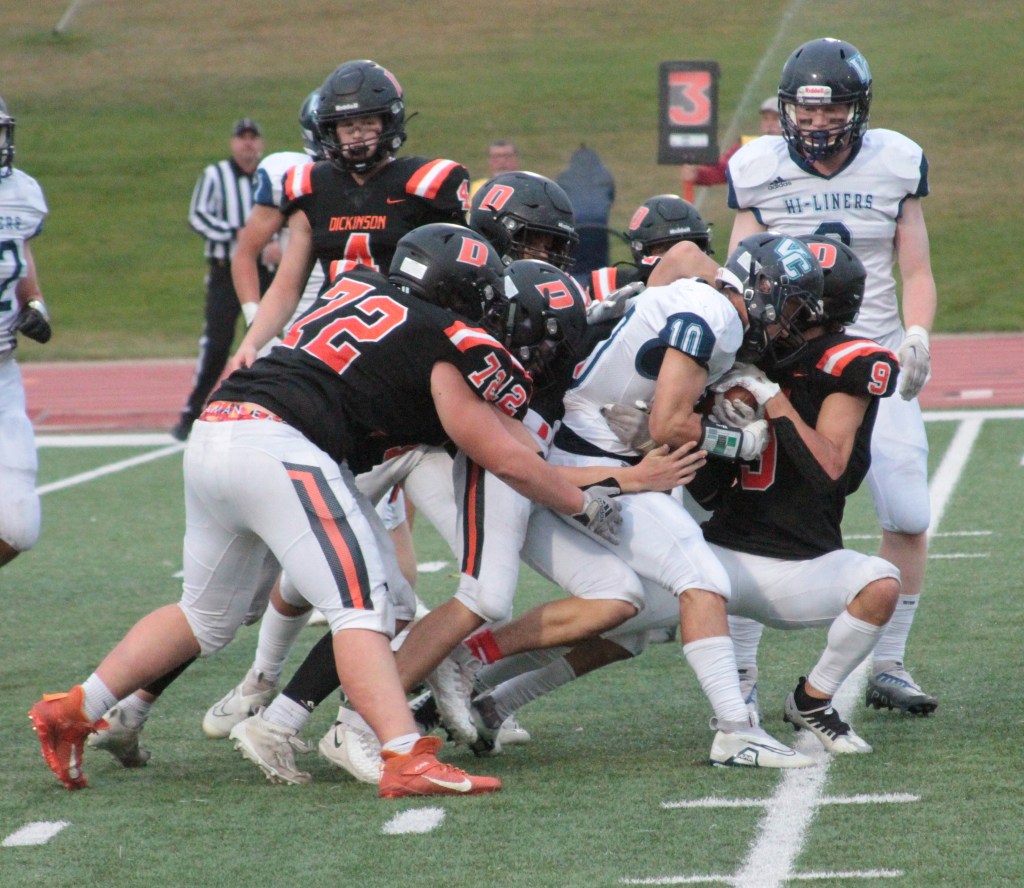 The Hi-Liners rushed for 295 yards and attempted just three passes – all of which went incomplete. Their defense held Dickinson to just 81 total yards, including just 35 yards rushing on 19 carries.