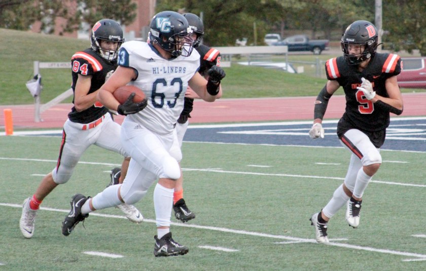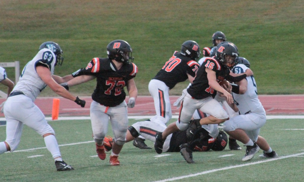 RUSHING: VC, Zach Sykora 23-108, Ethan Miller 12-115, Gavin Gerhardt 14-36, Bryson Heck 9-11, Conner Suhr 2-12, Scot Rhode 1-11, Caden Amann 1-2. DHS, Sam Stillings 7-16, Shayden Jackson-Zietz 6-15, Braden Meschke 3-8, Chase Selle 1-11, Stephen Zawodny 1-(minus-11), Carlson 1-(minus-4).
